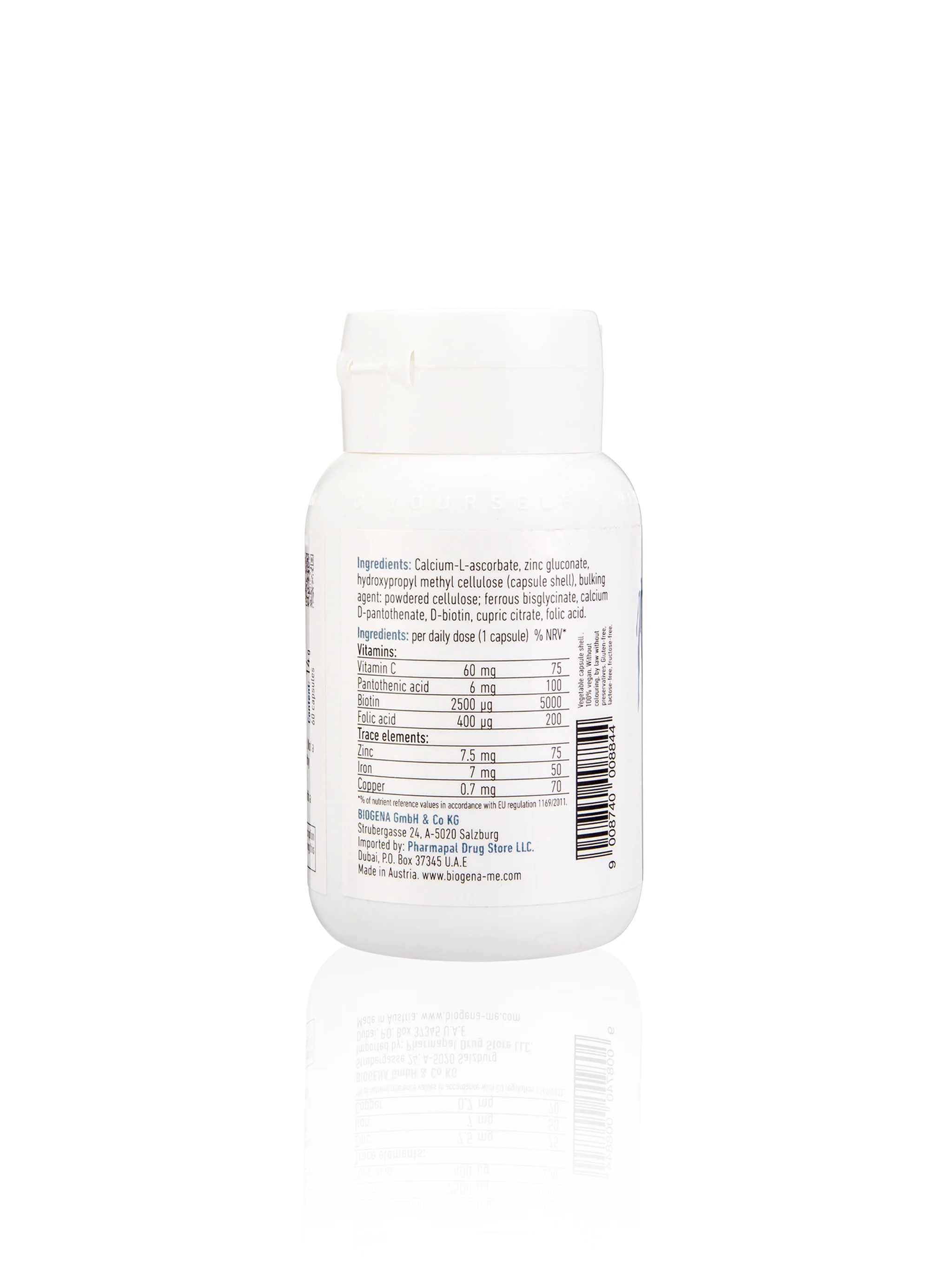 Biogena D-Biotin Formula is expertly crafted to support the health, strength, and appearance of your hair, skin, and nails. This balanced complex delivers key micronutrients for beauty from the inside out.