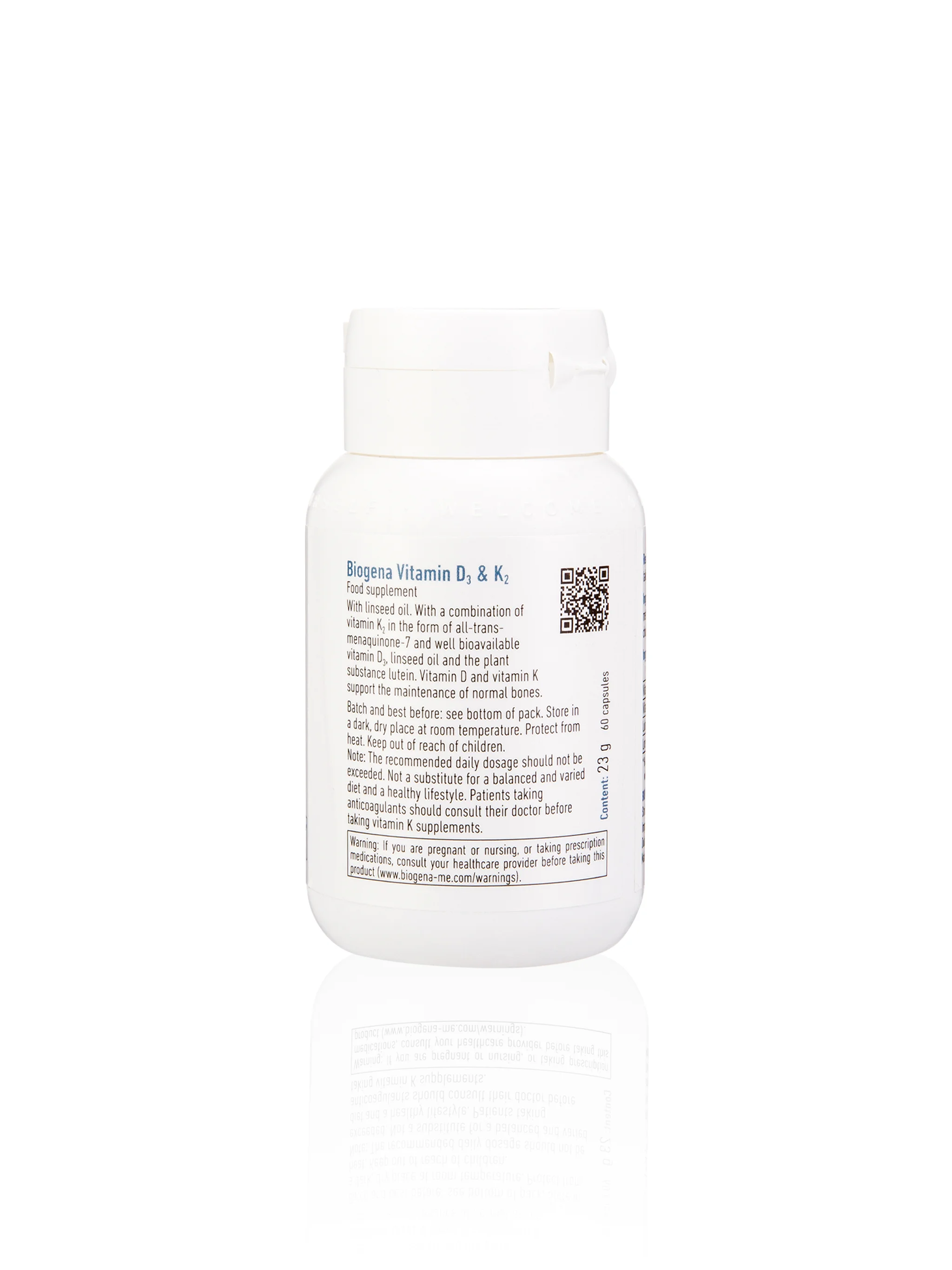 Biogena Vitamin D3 & K2 provides a powerful combination of two essential fat-soluble vitamins that work synergistically to support bone health and cardiovascular wellness. Vitamin D3 aids in the absorption of calcium and phosphorus, crucial for maintaining strong bones and normal blood calcium levels. Vitamin K2, in its highly bioactive and clinically validated form K2VITAL® (all-trans menaquinone-7 or MK-7), plays a vital role in directing calcium to the bones and teeth, helping to prevent its accumulation in arteries and soft tissues.