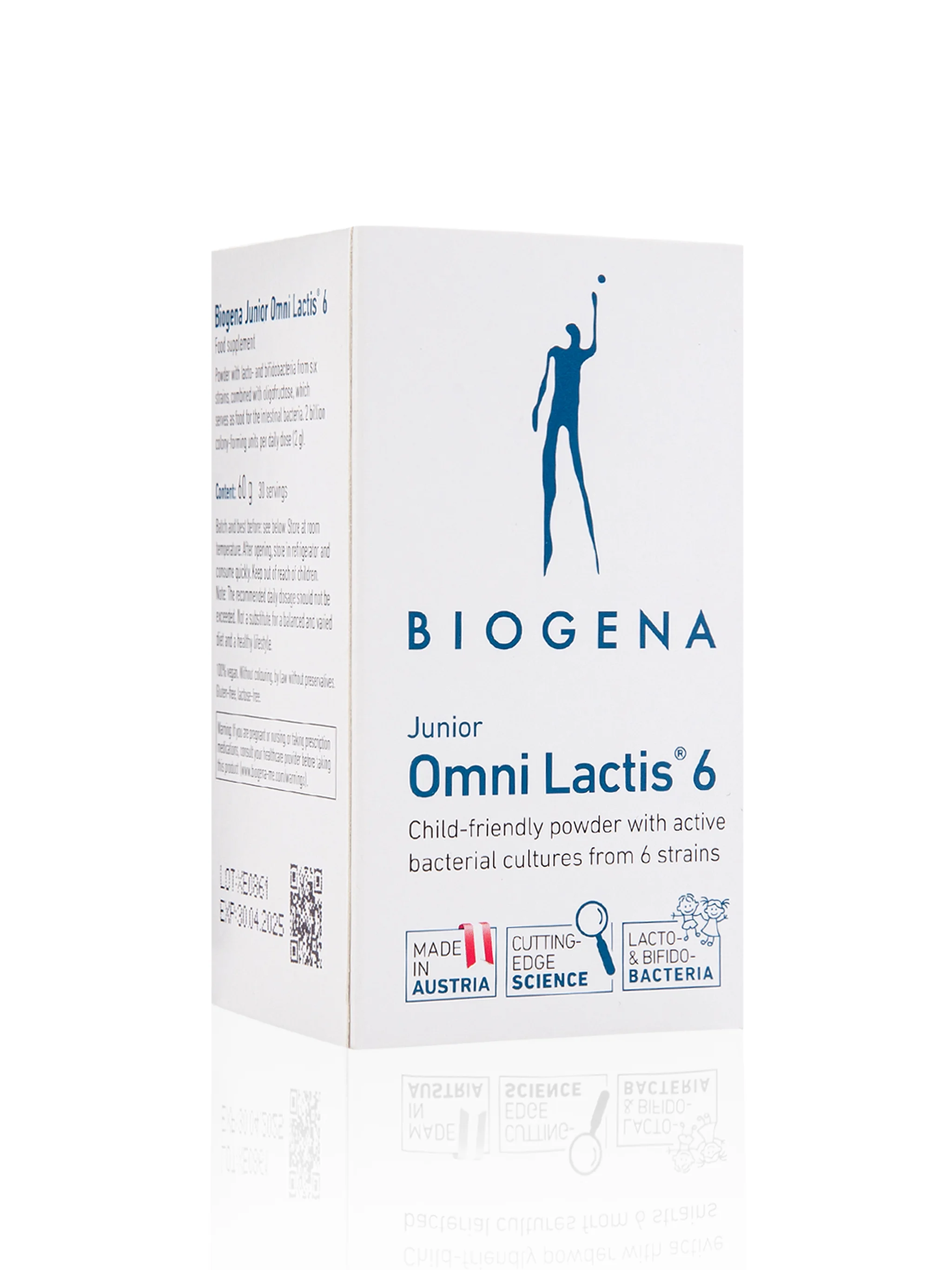 Biogena Junior Omni Lactis 6 is a highly concentrated, multi-strain synbiotic preparation specifically designed to nurture a healthy gut microbiome in children.