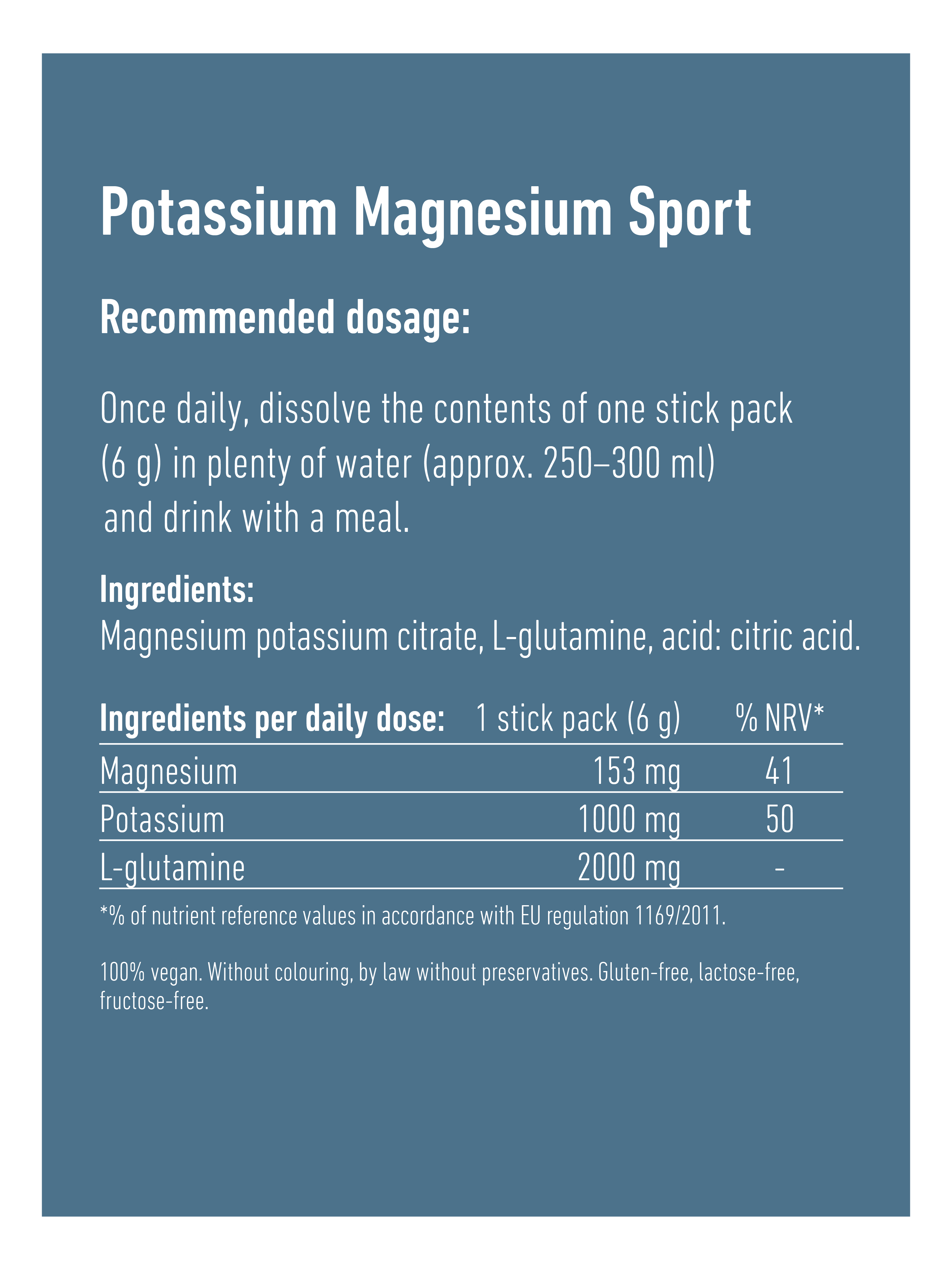 Thanks to the intelligent combination with the amino acid L-glutamine from the brand manufacturer Kyowa (Kyowa Quality®) with optimum bioavailability, Potassium Magnesium Sport provides additional support. In the body, the highest concentrations of L-glutamine are found in the muscles. The amino acid is also an energy substrate for the cells of the gastrointestinal tract.