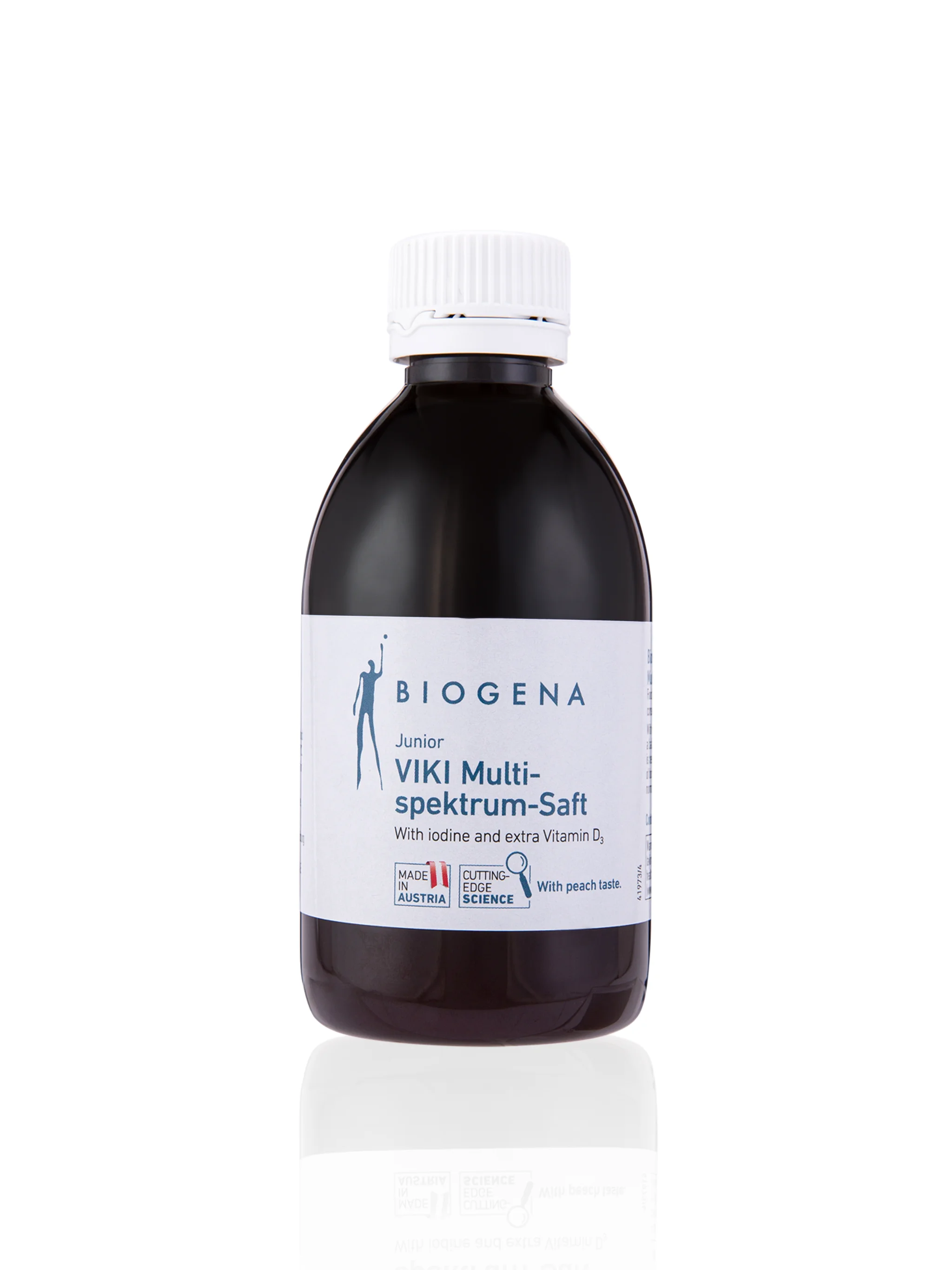 Biogena Junior VIKI Multispektrum Liquid offers a comprehensive daily supply of 17 essential vitamins, minerals, and trace elements in a tasty, easy-to-take liquid form. Specially crafted for children aged 4 years and older, but suitable for the whole family.