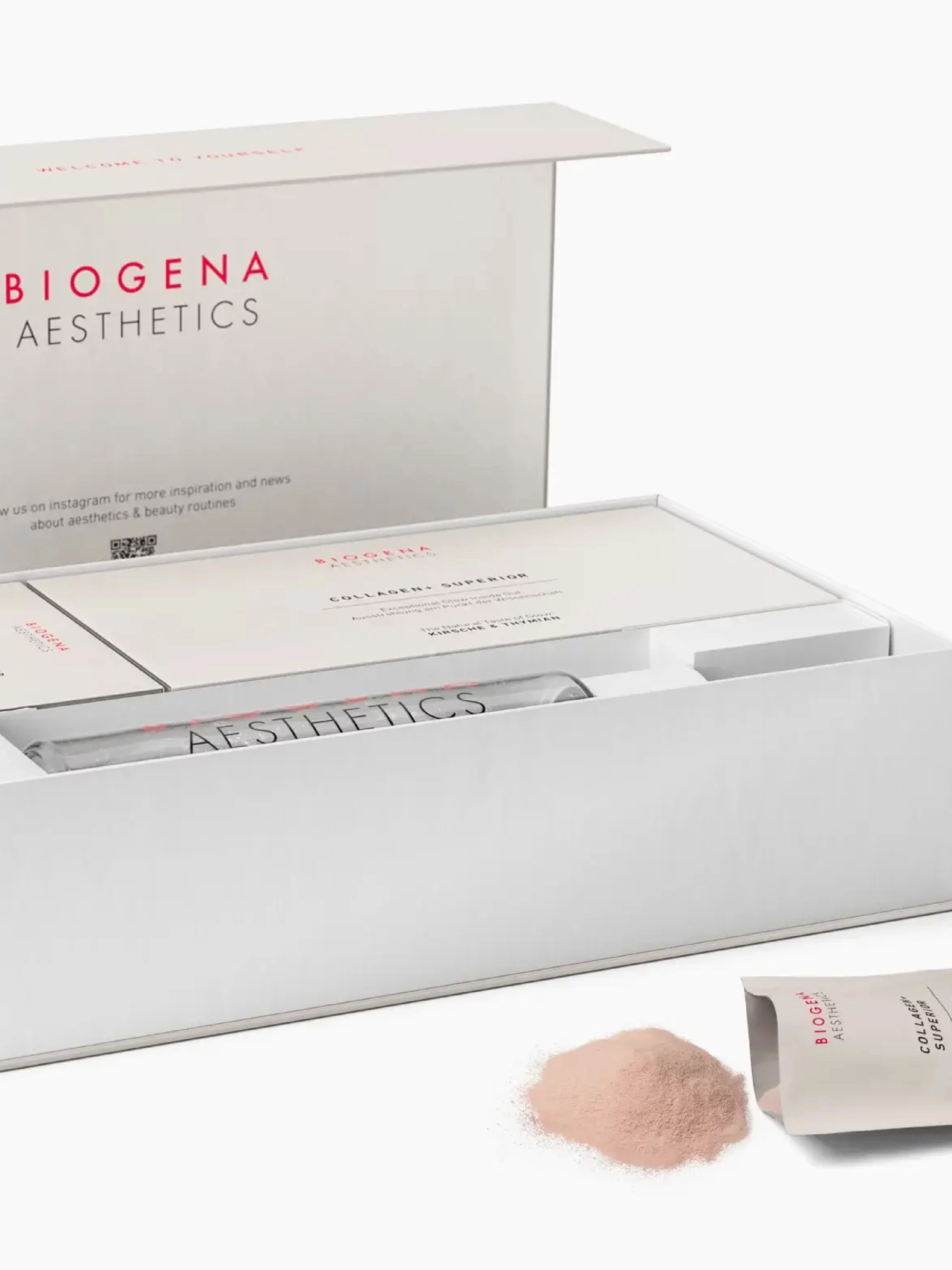 Biogena Aesthetics Hyaluronic Acid & ProCollagen+ Superior is your daily ritual for radiant beauty from the inside out. Each sachet delivers moisture-binding vegan hyaluronic acid (from Tremella extract) plus the ProCollagen Blend of glycine, proline, lysine, and vitamin C to support collagen formation and skin elasticity.