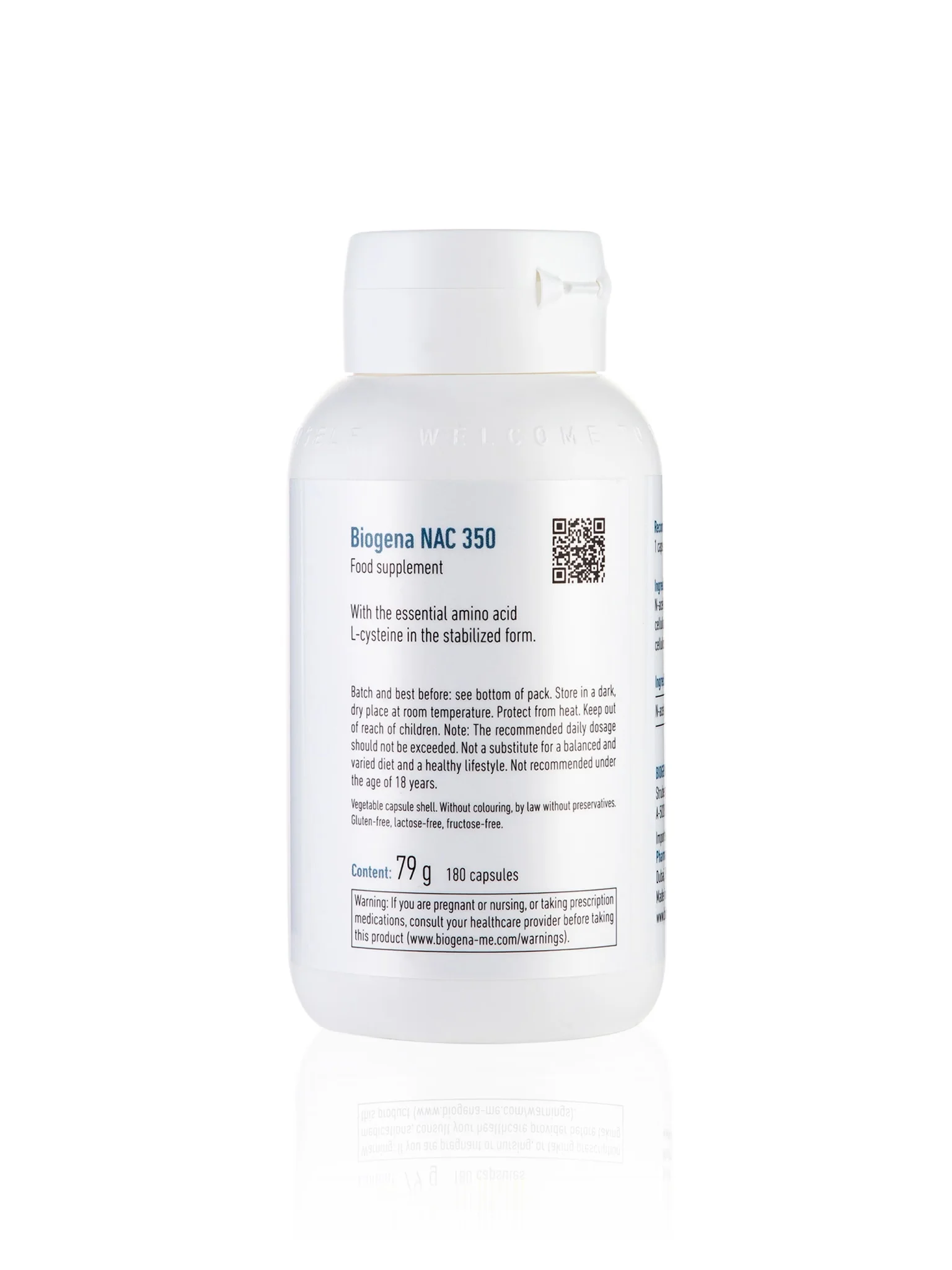 Biogena NAC 350 provides a potent 350mg dose of N-Acetyl-L-Cysteine, a stable and highly absorbable form of the amino acid L-cysteine. NAC plays a crucial role in supporting the body's natural defense systems, primarily by serving as a direct precursor to glutathione – one of the body's most important and powerful antioxidants.