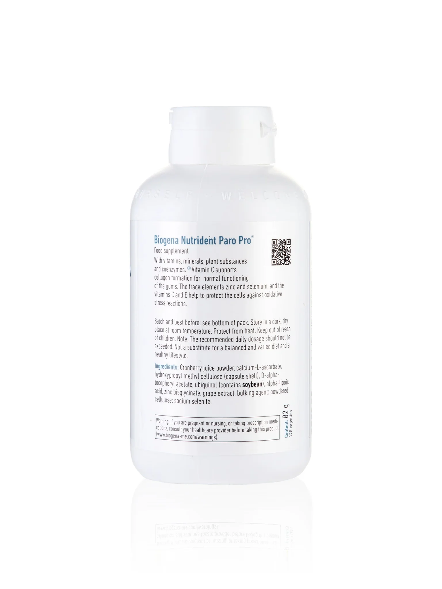 Developed in line with Biogena’s commitment to purity and clinical quality, Nutrident Paro Pro® offers a complete solution for individuals seeking to maintain strong, resilient gum tissue and periodontal function through targeted nutritional support.
