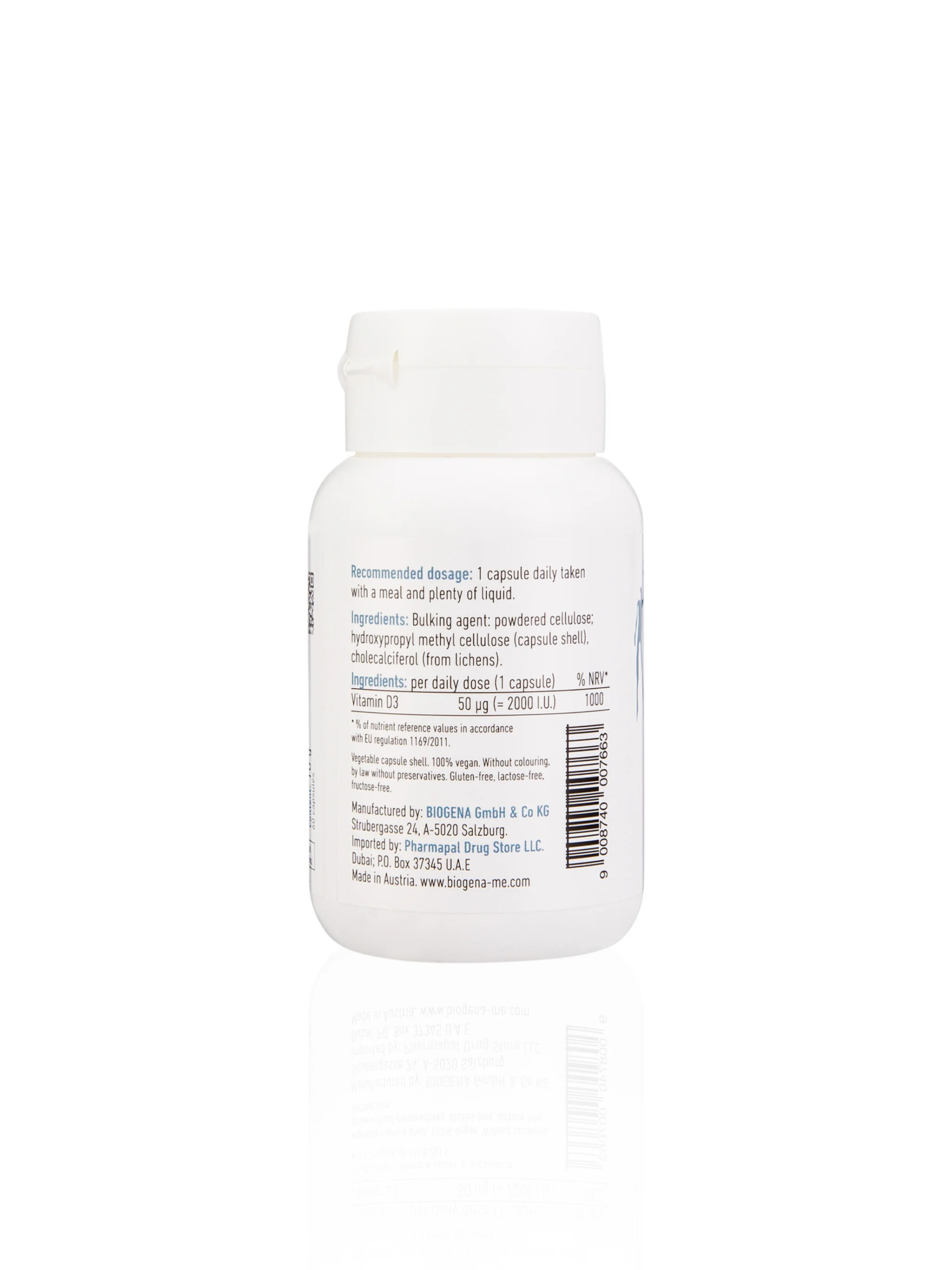Biogena Vitamin D3 2000 vegan offers a high-quality, purely plant-based source of Vitamin D3, derived from sustainably harvested Lichen. Each capsule delivers a potent dose of 50 micrograms (2000 IU) of cholecalciferol, making it an excellent choice for vegetarians, vegans, or anyone preferring a plant-derived Vitamin D supplement.
